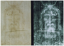 Pozytyw i negatyw twarzy z całunu (fot. Wikipedia)